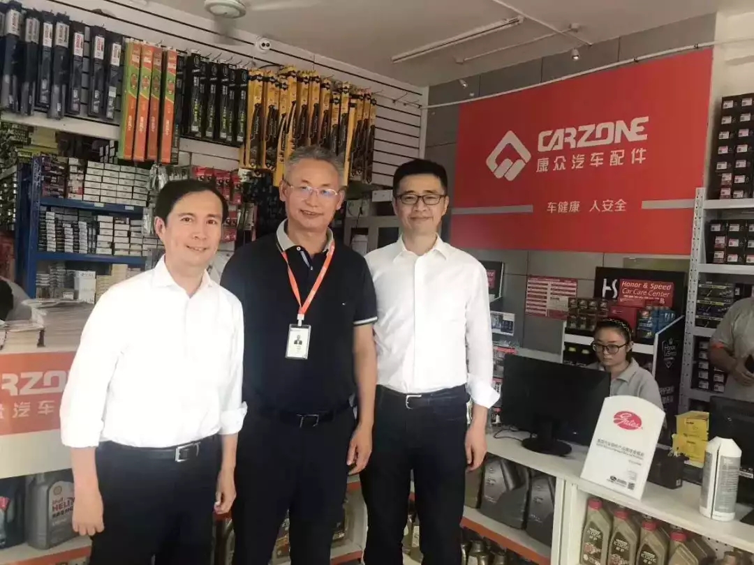 左起为阿里巴巴集团CEO张勇(逍遥子)、康众汽配创始人商宝国、天猫总裁靖捷