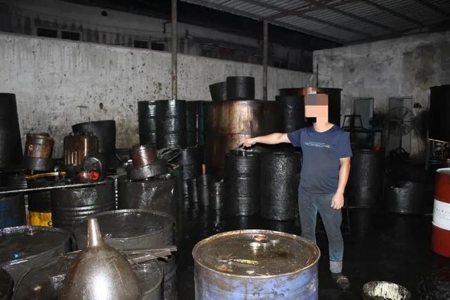 近期,治安大队联合市局环食药侦支队以及磐东、白塔派出所精准出击,在磐东街道城南村成功查获一非法润滑油加工厂,现场抓获工厂负责人袁某豹(男,51岁,磐东镇城南村人),以及工人薛某忠(男,28岁,普宁人)、薛某标(男,28岁,普宁人),查扣废弃机油、加工成品油100余桶,加工设备一批以及叉车一辆。