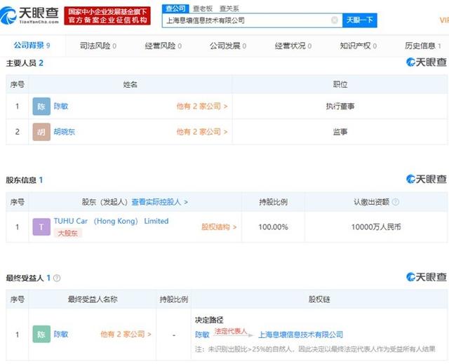 7月13日,有消息人士透露,途虎养车VIE架构即将搭建完成,已在进行股权质押流程,质权人为上海息壤信息技术有限公司。工商登记资料显示,上海息壤法定代表人为途虎养车创始人兼CEO陈敏,股东TUHU Car (Hong Kong) Limited(途虎香港),除陈敏外,上海息壤另一个主要负责人是途虎养车联合创始人兼总裁胡晓东。