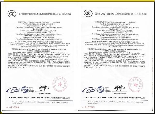 近日,嘉联达刹车片为熟悉和理解CCC认证工作,委托中汽认证中心有限公司进行了专业、系统的培训。并按照实施规则的要求,进一步完善公司体系文件管理,提高了产品质量保证能力,进行自查自纠和整改,顺利通过CCC认证。