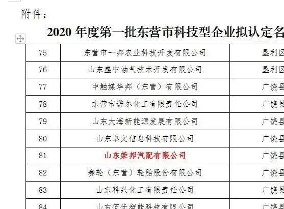 根据《东营市科技型企业认定工作指引》(东科发〔2019〕11号)要求,经各县区(开发区、高新区、示范区)科技主管部门推荐,拟认定2020年度第一批东营市科技型企业178家,山东荣邦汽配有限公司被评为2020年第一批“东营市科技型企业”。