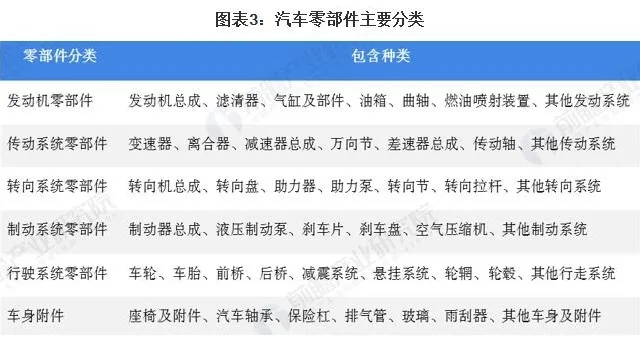 传统汽车零部件大体可以分为七大类。一辆轿车上不可拆解的零部件约有2万件,传统汽车由车身、底盘、动力总成(发动机、变速箱等)、内外饰、电子电器、空调、车身附件等各个系统组成,零件多而复杂,分类方法也比较多,常见的分类方法是将汽车零部件分为发动机、传动系统、转向系统、制动系统、行驶系统、车身附件和电子电器七大类。