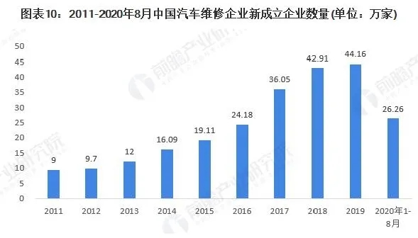 随着我国汽车保有量的不断增加和车龄结构的老化,我国汽车后市场得到快速发展,汽车维修和保养行业作为其重要的组成部分也增长迅速。企查猫数据显示,近十年全国汽车维修企业注册量逐年攀升,截至2020年8月底,企业名称中包含“汽车维修”的存续企业全国共有175.47万家。