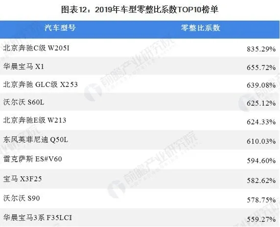 其中,汽车零整比系数和常用配件负担指数最高车型仍为奔驰系汽车,具体车型为2017款北京奔驰C级W205,分别是835.29%和35.36。汽车零整比系数和常用配件负担指数最低的车型为现代IX35,分别为170.9%和10%。