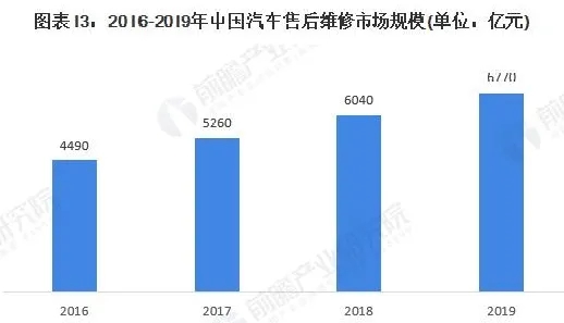 2016-2019年,我国汽车售后维修市场规模逐年增长,统计数据显示,2019年,我国汽车售后维修市场规模约为6770亿元。车辆平均年龄的增长,在线零售的发展和政府法规是推动市场发展的直接动力。随着整合和淘汰的进行,中国的汽车维修服务市场会愈加成熟。