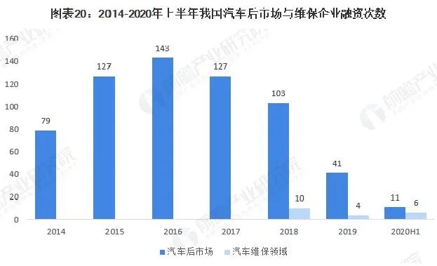 2020上半年汽车后市场主要有11家公司完成融资,按照公开信息统计,融资总额超过60亿元人民币。其中汽车维保(包含汽配供应链)企业有6家。