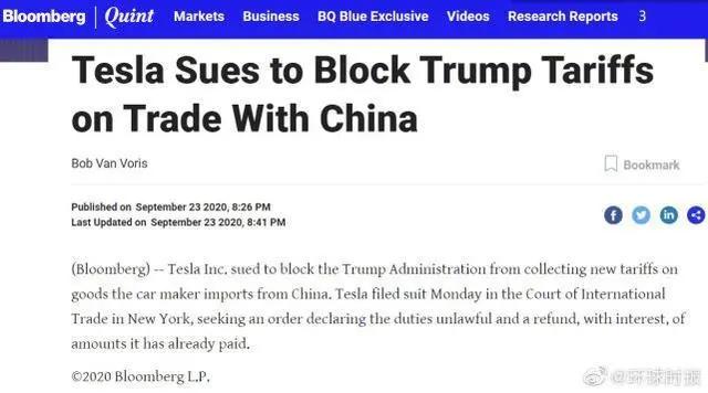【美国特斯拉公司起诉特朗普政府,要求停止对华关税】