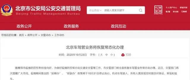 日前,北京市公安局公安交通管理局发表,随着北京市疫情防控形势持续向好,为做好疫情防控常态化交通安全管理工作,北京市交管部门将全面恢复车驾管业务常态化办理。近日,交管部门再次提醒广大市民,疫情期间推出的"延期办"、"容缺办"政策将于10月31日停止执行,机动车驾驶人、所有人需按规定时限及时换证、审验和验车。