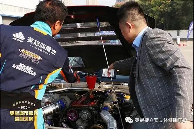 继英冠润滑油城市飘移巡回表演沧州站告捷后,2020年10月25日,英冠润滑油联合英冠石家庄服务中心在石家庄举办了声势浩大的飘移表演。飘移现场,将英冠润滑油缓缓加入发动机内,与赛车融为一体,激活赛车基因。百名汽修厂老板和车主共同见证了赛道的高负荷运转和英冠润滑油对发动机的保护极限。