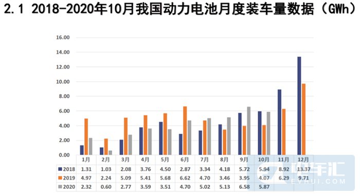 11月11日,中国汽车动力电池产业创新联盟发布2020年10月新能源汽车电池产销量及装车量数据。