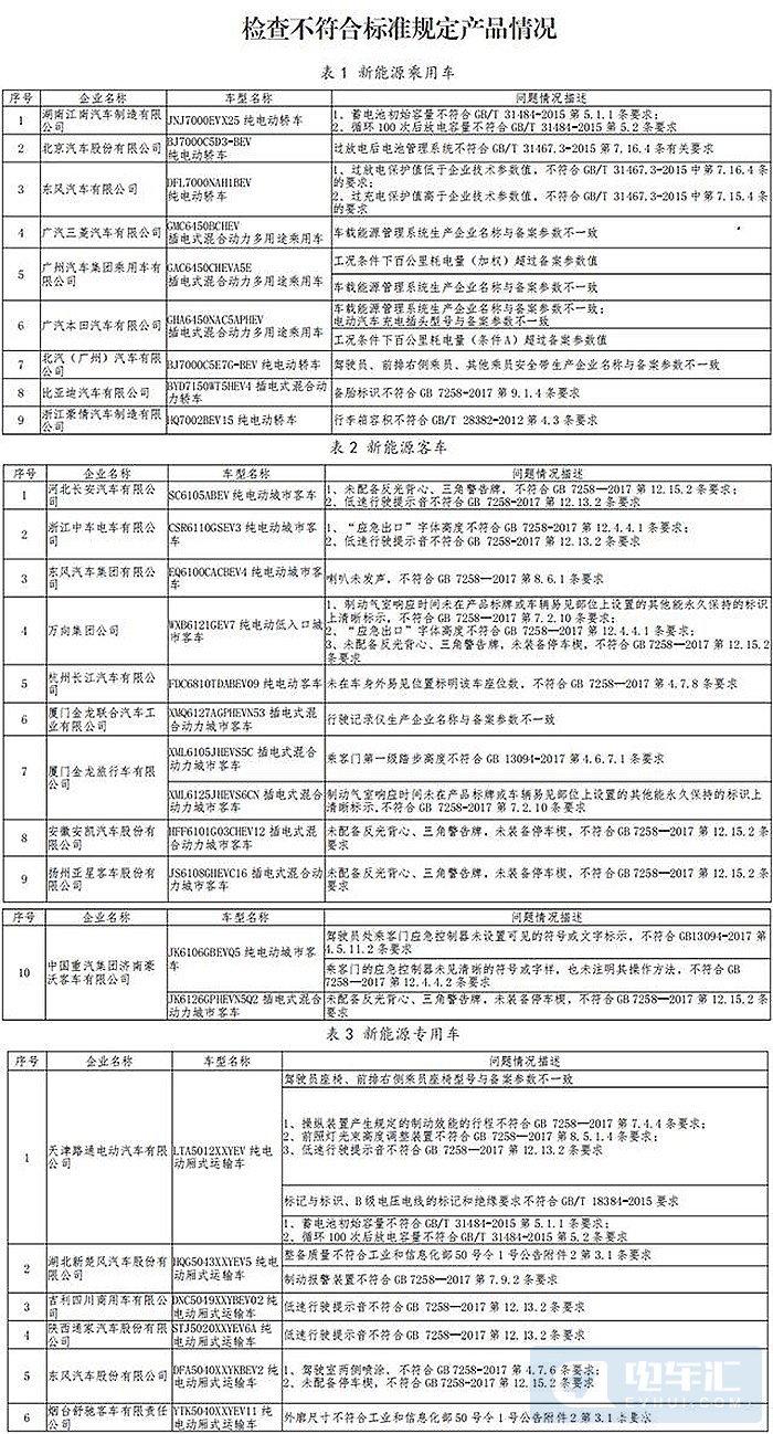 (一)新能源乘用车,共涉及9家企业的9个车型产品,涉及动力电池容量和保护功能、行李箱容积、轮胎规格、标志标识等项目不符合国家标准或管理规定。