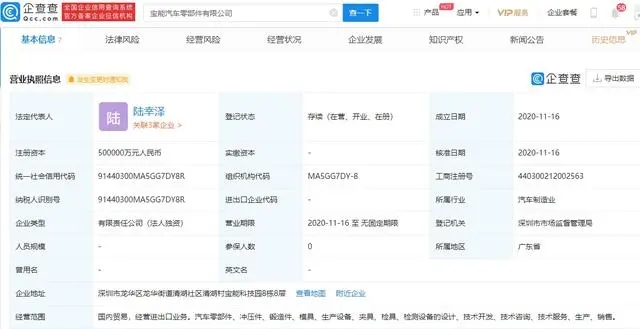 【宝能汽车成立汽车零部件公司,注册资本50亿元】