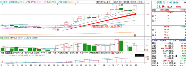 2)上游汽车零部件板块。华阳集团是国内优秀汽车电子标的之一,四大品类业务:汽车电子(63.03%,核心是智能座舱+ADAS),精密压铸(15.76%),精密电子部件(12.63%),LED照明部件(4.81%)。叠加智能汽车+无人驾驶利好,股价一路飙涨超60%。