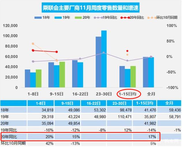1)11 月乘用车继续复苏。据乘联会数据,11 月上半月乘用车累计零售同比+17.2%,批发同比+11.4%,延续复苏态势。