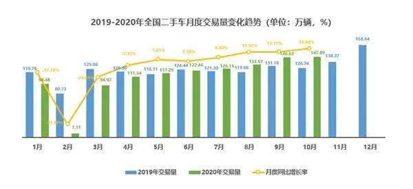【2020年10月二手车交易147.89万辆,同比增长16.68%】