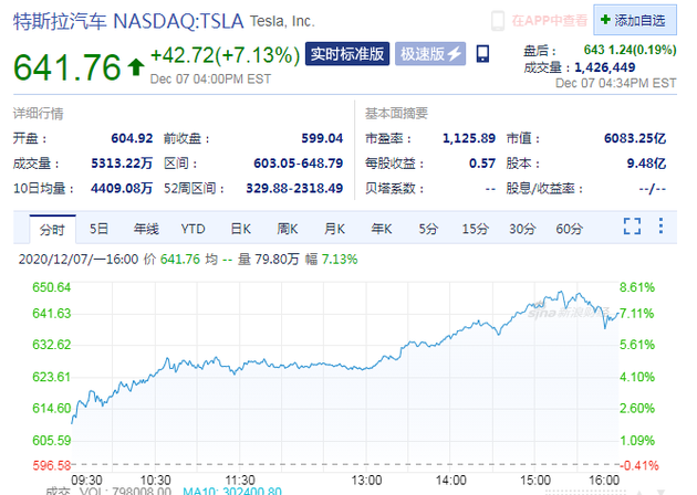 自上个月被纳入标普500指数(S&P 500)后,特斯拉市值已增加了2000多亿美元。上周,特斯拉股票还被摩根士丹利列入2021年“长期增长股票”名单。昨日,特斯拉股价收于641.76美元,上涨7.13%。