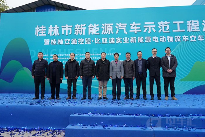 12月9日,由桂林市贯彻落实广西新能源汽车推广应用攻坚行动领导小组办公室、市工业和信息化局主办,桂林市交通投资控股集团有限公司、桂林比亚迪实业有限公司承办的“桂林市新能源汽车示范工程活动暨桂林交通控股·比亚迪实业新能源电动物流车交车仪式“在桂林交通控股集团鼎晟充电平山综合快充示范站隆重举行。