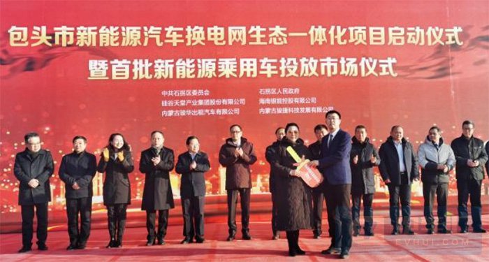 近日,内蒙古包头市新能源汽车换电网生态一体化项目签约仪式、项目落地包头启动仪式暨首批新能源乘用车投放市场仪式在石拐区举行。