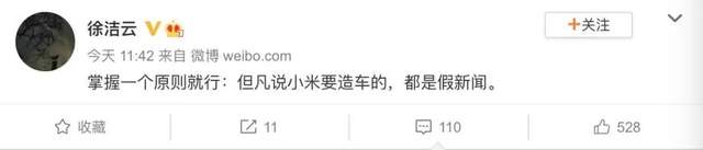 【小米总办副主任徐洁云回应"小米造车":假新闻】