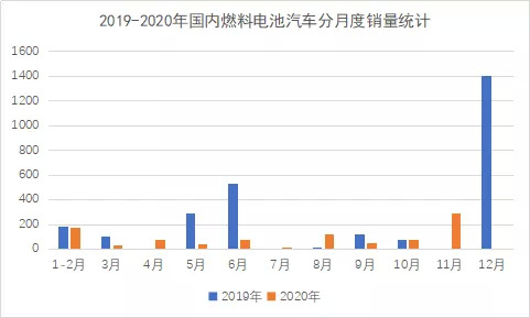 纵观全年燃料电池汽车市场,受年初疫情和年底观望因素叠加,整体产销量“腰斩”。根据1-11月产销情况加上12月份预测数据,国内全年燃料电池汽车预测产销量为1400辆,同比下降48.8%。截至11月底,我国燃料电池汽车市场保有量达到7132辆,虽然有在2020年前突破8000辆的希望,但希望并不大。