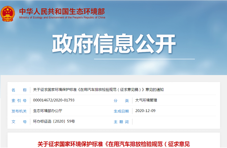日前,《在用汽车排放检验规范(征求意见稿)》(以下简称“《规范(征求意见稿)》”)由生态环境部对外发布。