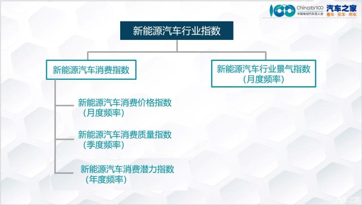新能源汽车行业指数是由消费指数和行业景气指数为主要构成,其中,消费指数再下分3个分指数,分别为消费价格指数(月度频率)、消费质量指数(季度频率)和消费潜力指数(年度频率)。各项指数研究成果滚动更新,将呈现行业全景,直观反映行业运行规律与趋势,为行业形势研判、市场侧研究等注入新的、专业的力量,赋能新能源汽车行业不断向前发展。
