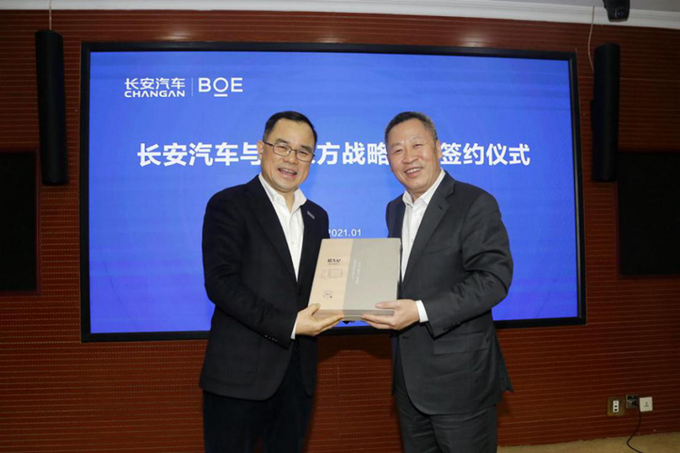 此前,腾讯、华为、宁德时代和科大讯飞等行业顶级企业已成为长安汽车的智慧伙伴。如今在“十四五”开局之年,长安汽车又携手全球物联网创新企业BOE(京东方),让未来长安汽车新一代座舱显示产品充满了无限想象。