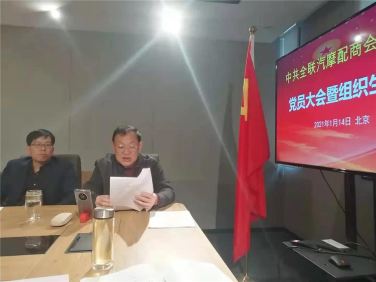 按照全国工商联机关党委、直属商会综合党委《关于召开 2020 年度组织生活会和开展民主评议党员工作的通知》有关要求,根据全国工商联汽车摩托车配件用品业商会党支部全年党建工作安排,以学习贯彻党的十九届五中全会精神,巩固深化“不忘初心、牢记使命”主题教育成果,提升基层党组织政治功能和组织力,教育引导广大党员增强“四个意识”、坚定“四个自信”、做到“两个维护”,为促进“两个健康”不懈奋斗为要求,并结合疫情防控和商会工作实际情况,2021年1月14日下午,汽摩配商会党支部以线下+线上方式召开了2020年度党员大会暨组织生活会,支部全体党员出席了会议,并特邀全国工商联宣教部刘佩华处长给予全程指导。