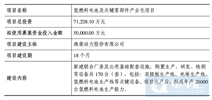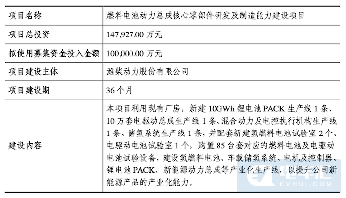 2020年12月24日,潍柴动力发布2020年度非公开发行 A 股股票预案,拟募资不超过130亿元,全部用于投资燃料电池产业链建设项目、全系列国六及以上排放标准H平台道路用高端发动机项目、大缸径高端发动机产业化项目、全系列液压动力总成和大型CVT动力总成产业化项目及补充流动资金等。其中燃料电池产业链建设项目有:氢燃料电池及关键零部件产业化项目,总投资7.12亿元,拟使用募集资金5亿元;固态氧化物燃料电池及关键零部件产业化项目,总投资15.13亿元,拟使用募集资金5亿元;燃料电池动力总成核心零部件研发及制造能力建设项目,总投资14.79亿元,拟使用募集资金10亿元。