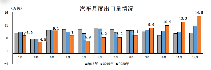 中汽协表示,2021年,尽管国外疫情继续扩散的风险依然存在,但我国作为主要经济体对全球经济复苏的推动还会进一步加强,特别是随着《区域全面经济伙伴关系协定》(RCEP)以及中欧投资协定相关互惠协议和措施的进一步落实,我国与东盟、欧盟进出口贸易将会继续呈现增长,也将对我国汽车出口起到积极地促进作用。同时,“十三五”期间,我国汽车出口总体保持了稳定的发展态势,在我国汽车制造水平不断提升、技术能力稳步进步、全球经济逐步企稳向好等因素综合作用下,“十四五”期间,我国汽车出口有望继续稳中向好。