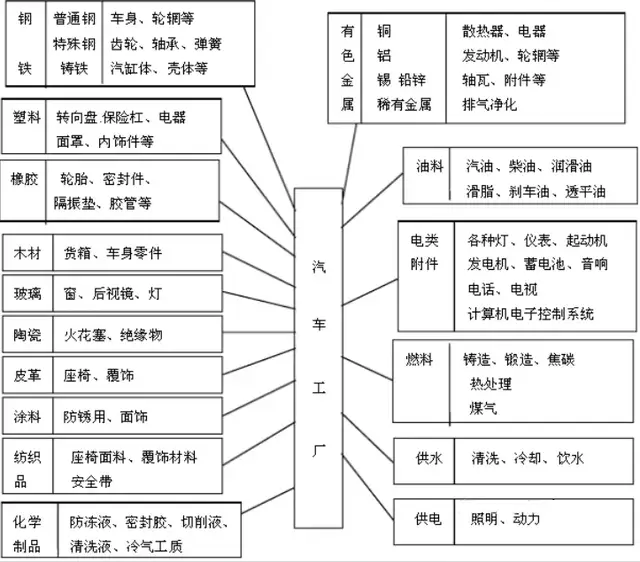 材料技术进步也是发展方向之一,汽车零部件产品在汽车制造工厂中,分别由不同的原材料构成:钢铁、塑料、橡胶、木材、玻璃、陶瓷、皮革、涂料、纺织品以及化学制品等。