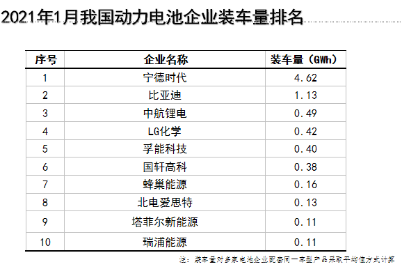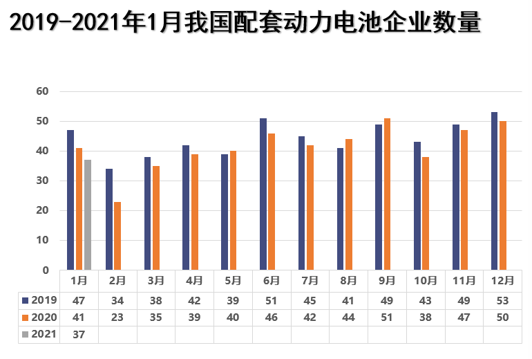 2019-2021年1月动力电池装车量数据