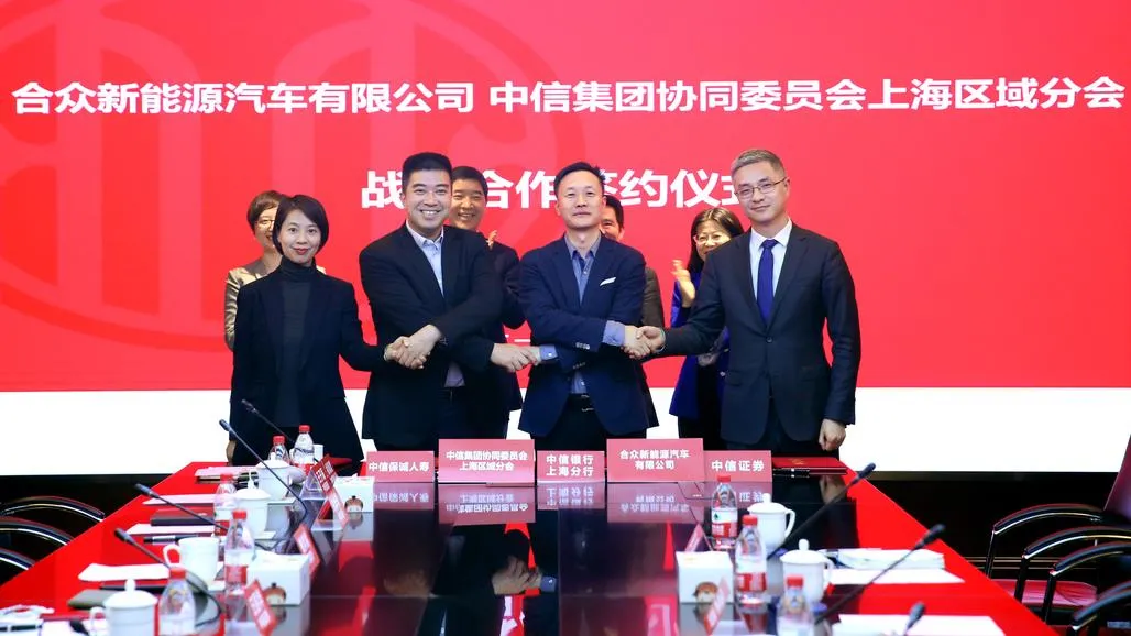 合众新能源汽车有限公司与中信集团协同委员会上海区域分会签署全面战略合作协议,开启与中信银行上海分行、中信证券及中信保诚人寿上海分公司的全方位深入合作,并获中信银行50亿元综合授信额度,融资资金将主要用于哪吒汽车智能座舱、智能驾驶等智能技术研发。