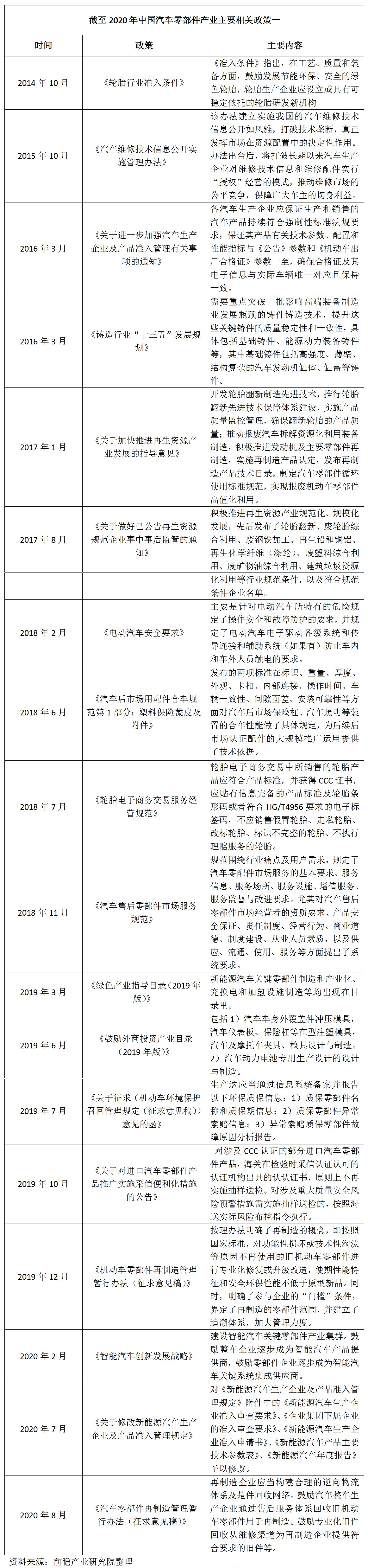 由于每辆汽车需要的汽车零部件达到1万个左右,而这些零部件又涉及到不同的行业和领域,在技术标准、生产方式等方面存在较大的差距。目前,国家关于汽车零部件制造业相关的政策主要分布于汽车产业的相关国家政策当中。
