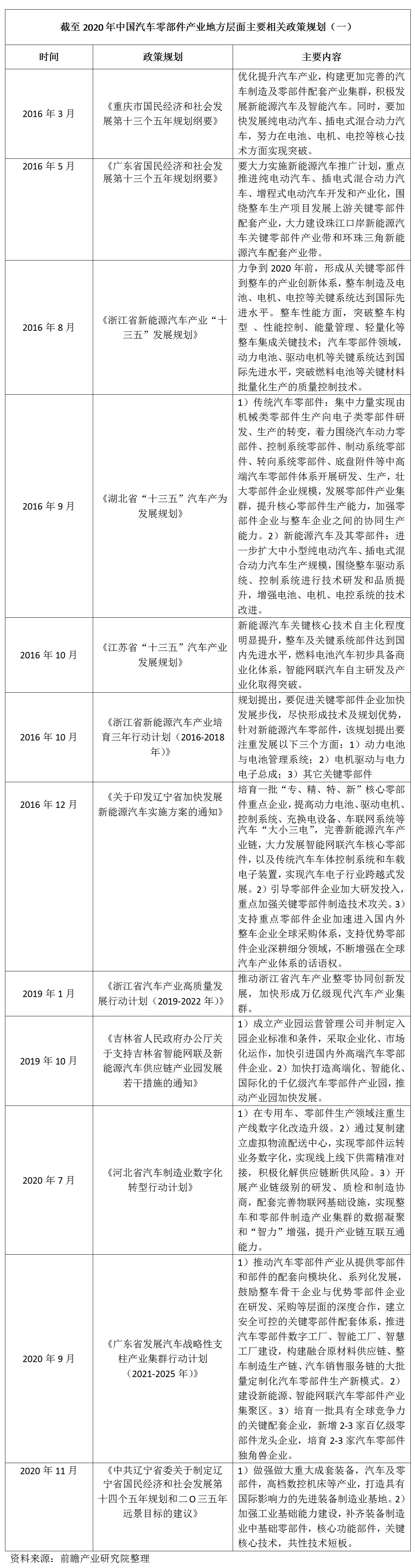 地方政策规划出台,扶持汽车及新能源汽车零部件产业发展