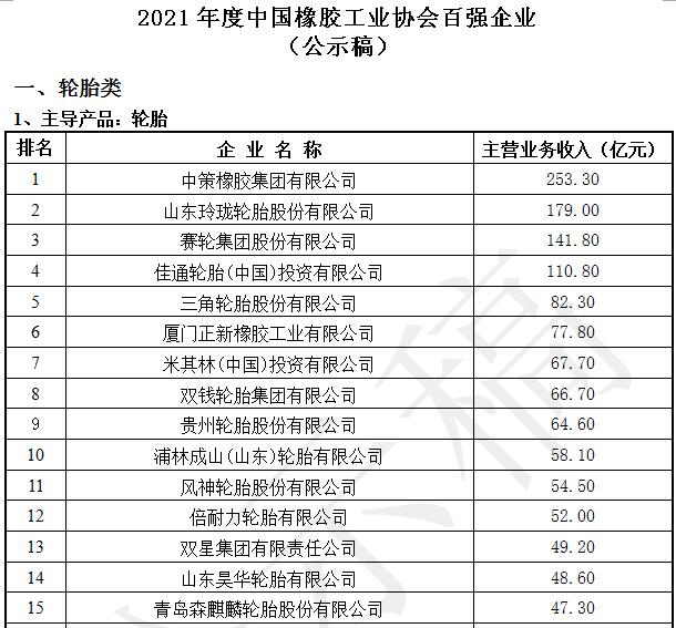 (本文由轮胎世界网整理,名单来自中国橡胶工业协会)