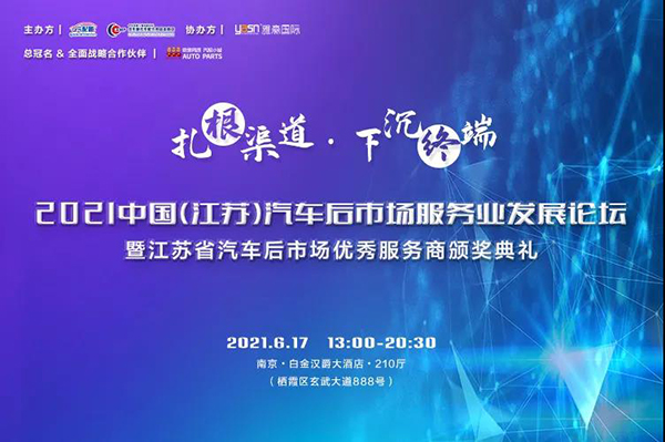 6月17日,由汽配圈主办的“2021中国(江苏)汽车后市场服务业发展论坛暨江苏省汽车后市场优秀服务商颁奖典礼”,将在江苏南京举办。