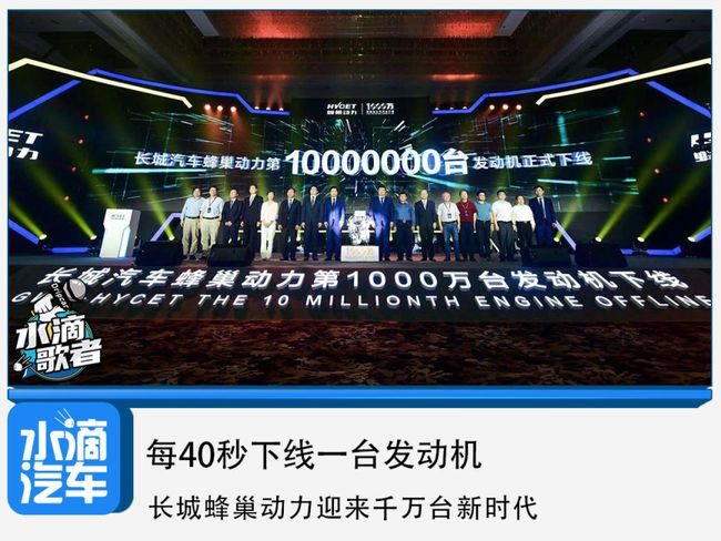 “每40秒就下线一台发动机,蜂巢动力处于行业领先水平”、“从2016年至今,蜂巢动力连续五年产销突破百万台”,长城用21年时间,发动机产销从0突破1000万,成为中国品牌首家生产销售发动机达到一千万台量级的企业,这21年间长城汽车始终坚持自主研发、自主创新,不断地突破核心科技壁垒。