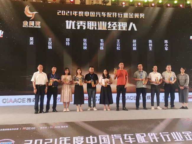 此外,在19日下午,在金翼奖颁奖盛典上,温州国际会议展览中心有限公司项目经理郑特荣获“2021年度中国汽车配件行业金翼奖优秀职业经理人”奖项。