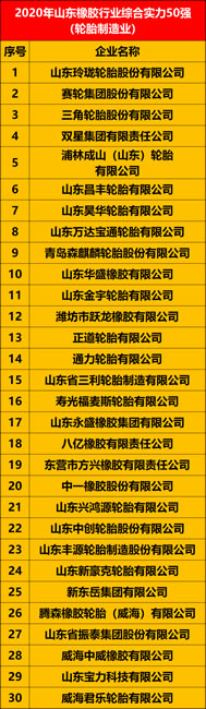 近日,山东省橡胶行业协会发布“2020年度山东省橡胶行业综合实力50强企业”名单。