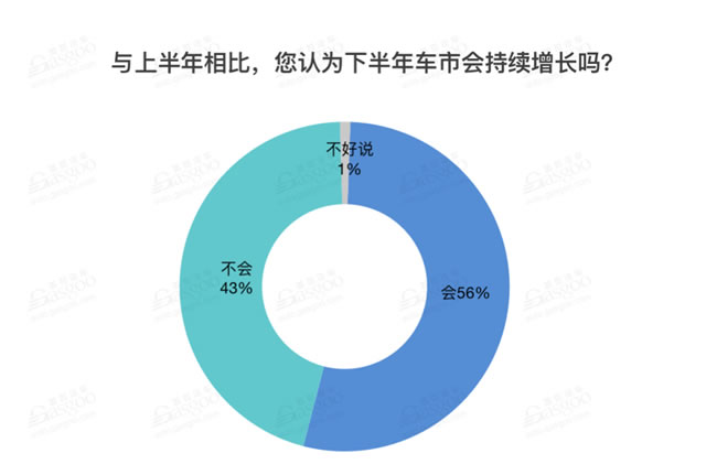 本次调查中,对于下半年车市走向, 56%参与者认为不会持续增长,43%的人依然保持乐观态度。对于不看好车市增长原因,去年同期市场恢复带来的高基数成为首选,同时,不少人认为缺芯问题依然是较大羁绊。