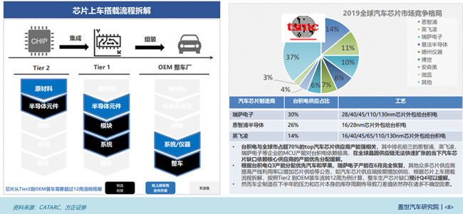 此外,令产业链头疼的芯片问题依然持续。中汽协相关资料显示,截至目前,芯片短缺对各车企影响程度不一(影响跨度在3%-30%之间),大部分企业表示三季度的影响可能仍然比较严重(客车企业均表示三季度影响大于二季度)。对此,研究院指出,代工厂8英寸晶圆产能受限是造成本次全球“芯荒”的关键,从供需端分析,目前全球8英寸晶圆产线使用率已接近饱和,当前产能吃紧。2021年缺芯缓解主要依靠现有头部企业的产能分配调整,结合台积电、瑞萨、恩智浦等企业公告,如果Q3晶圆代工厂产能分配倾向车用芯片,同时头部企业提高芯片输出,汽车缺芯有望在Q4缓解。