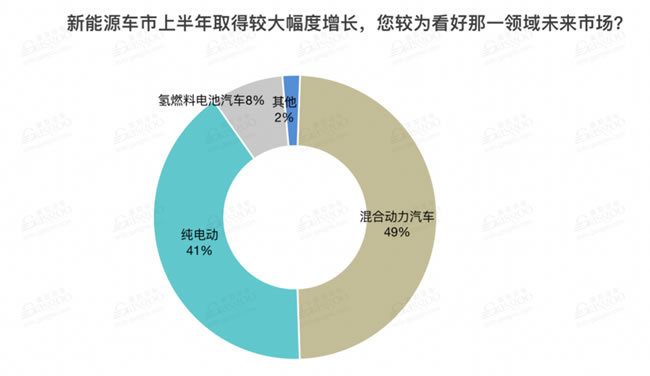 对于新能源车市下半年发展,行业人士普遍较为看好。具体到细分市场,在盖世汽车此次调研中发现,混合动力汽车发展前景获得较高支持度。