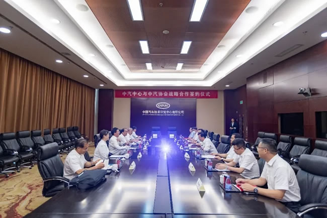 2021年7月19日,中国汽车工业协会(以下简称“中汽协会”)与中国汽车技术研究中心有限公司(以下简称“中汽中心”)在天津签署战略合作协议。中汽中心党委书记、董事长、总经理安铁成,中汽协会常务副会长兼秘书长付炳锋出席并见证签约。中汽中心党委委员、副总经理李洧,中汽协会副秘书长陈士华代表双方签署协议。