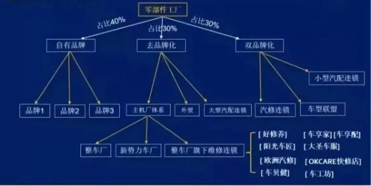 现在配件经销渠道迈入3.0时代了,由原来产品从零部件工厂通过省级经销商往下批,经过多级经销商加价转手到汽修厂手里的1.0时代,后来变为由零部件工厂直接找地市(县)级经销商,从而减少中间环节到汽修厂的局面,这其中出现小众经销商找工厂贴牌;然后随着各类主机厂、4S店、金融保险资本进入,一些连锁加快布局,零部件工厂要加快发展,将面临去品牌化的多方战略合作,才可赢得市场的机会,才能拉开与竞争对手的距离。