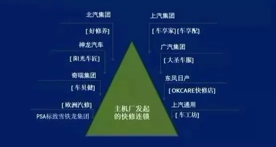 2018年,继上汽集团推出的车享家连锁体系,北汽集团推出的好修养连锁体系,广汽集团推出的大圣车服,神龙推出阳光车匠体系,东风日产开建的OKcare、上海通用推出的车工坊等品牌维修店外,PSA加快步伐进入后市场推出欧洲维修,先后并购上海建鑫、入股山东优配车联;同时奇瑞汽车推出车贝健体系。