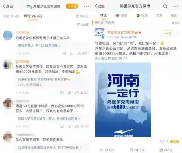 当这件事刚被爆出时,有网友在鸿星尔克的官方账号下评论,“虽然鸿星尔克捐了5000万,但是鞋子质量还是要说一下,2011年在他家买的鞋子,今年就坏了。”引发众多网友点赞评论。