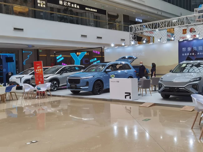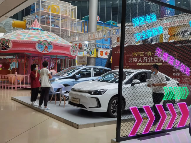 商圈中的汽车展示其实并不鲜见,无非就是在一段时间内腾出一块区域给汽车厂商,让他们用来展销产品,到期后厂商撤展、各走各的路。本以为此次商场中的新能源购车节也是同样的“套路”,但当记者到了现场才发现,这次展会并没有那么简单。