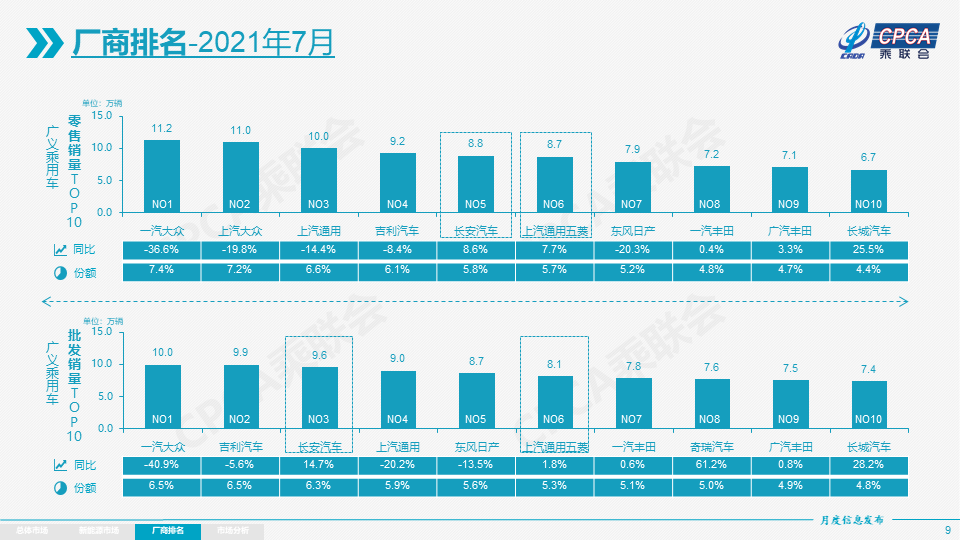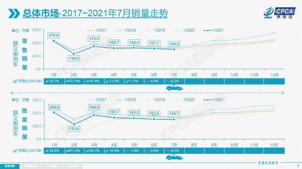 零售:2021年7月乘用车市场零售达到150.0万辆,同比2020年7月下降6.2%,而且相较2019年7月增长1%,2020年下半年的高基数压力体现。