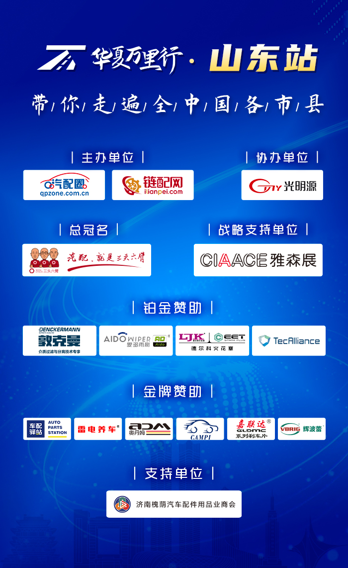 为了深入了解竞争激烈的中国汽车后市场,并与终端经销商进行零距离沟通,8月10日,“华夏万里行·山东站”发行活动,正式启程。本次发行活动汽配圈和光明源共同组建专业小团队,由汽配圈、链配网联合主办,光明源协办,三头六臂独家冠名,雅森展作为战略支持单位,共同携手后市场各品类知名厂商——敦克曼滤清器、爱多雨刷、德尔科火花塞、泰案联、车配驿站、雷电养车、奥丹姆、温州汽配会、嘉联达系列刹车片、辉波蕾赞助,并受到了济南槐荫汽车配件用品业商会支持。规划3个月将走遍山东省各市县,进行无死角覆盖,将行业资源进行数据化整合,基础资源的“集结”,收集经销商资料,为上游企业渠道拓展提供数据支持。